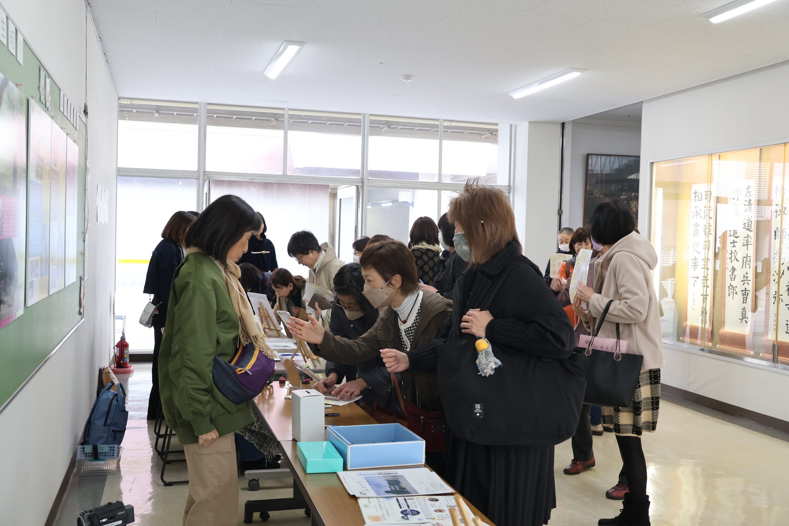 在校生も足をとめ興味深く見る姿も。