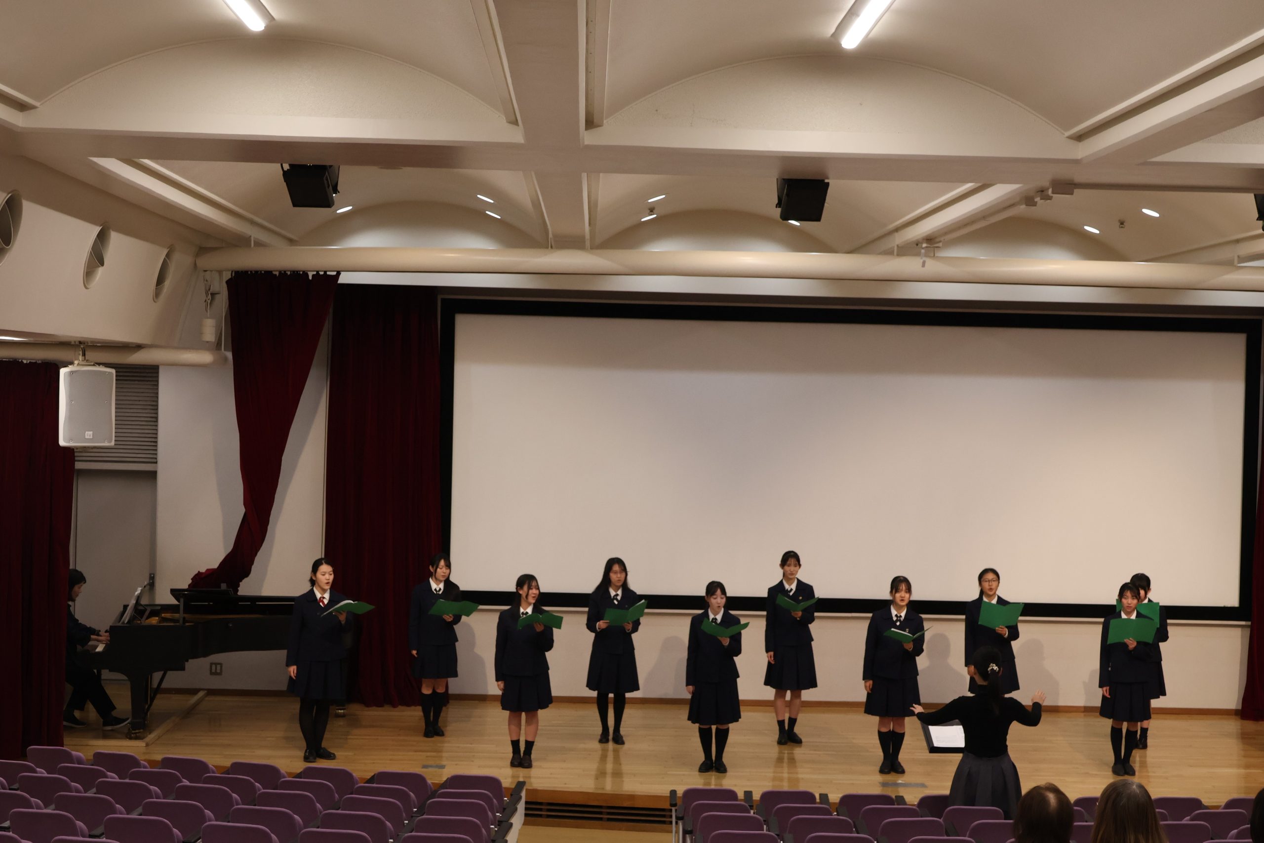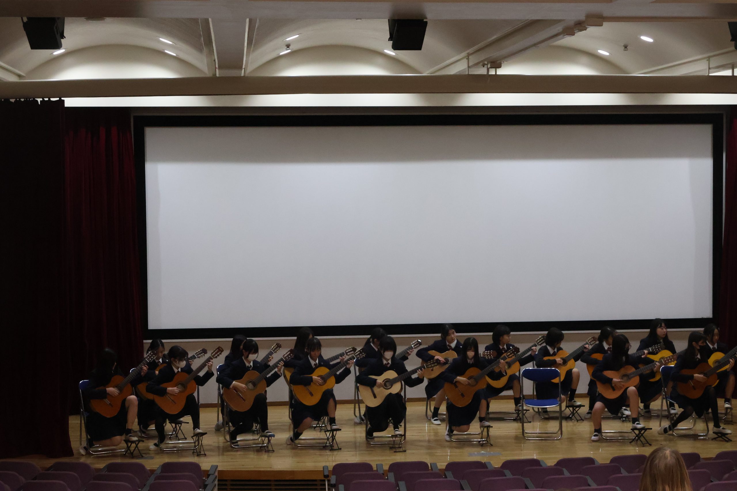 ホームカミングデー後半はポロニアホールで初めての試み、現役ギター部、合唱部の生徒による演奏会。